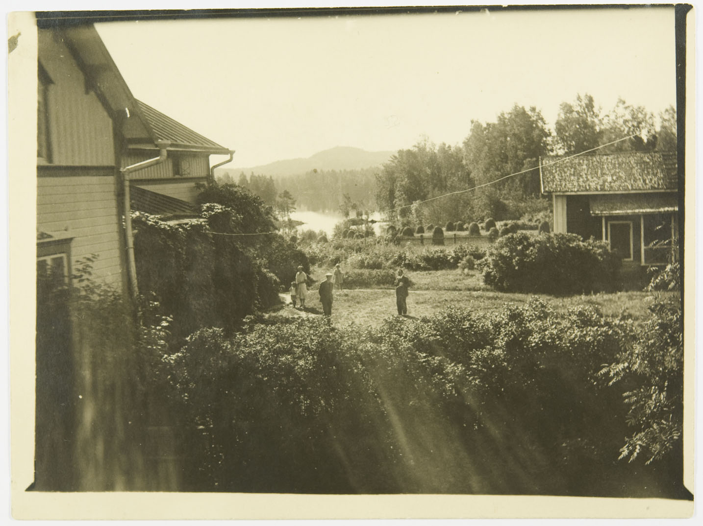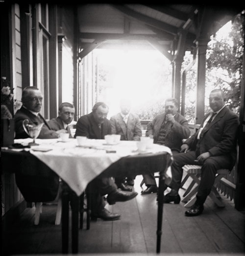 Eino Leino Karjalan Kartanon terassilla Rautalammilla. Leino kolmas vasemmalta. Kuva: Rautalammin museo.