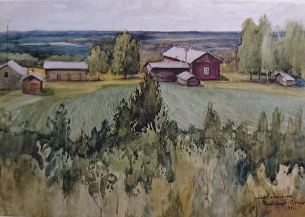 Pirkkala Väinö Hämäläisen maalaamana. Kuva: Postikortti, Rautalammin museo.