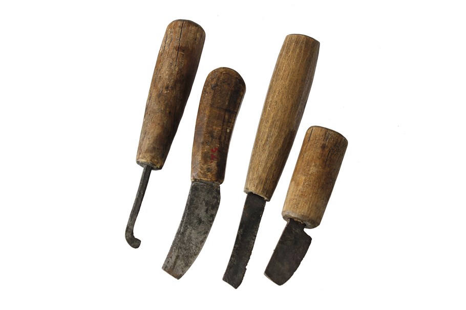 Kupparinkirveitä, joilla tehtiin pieni haava ihoon ja haavan ylle asetettiin kupparinsarvi imemään verta pois. Pienikokoiset kupparinkirveet Rautalammin museon kokoelmista. Kuva Kari Jämsén/Rautalammin museo.